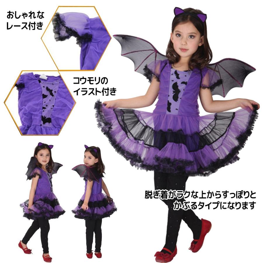 ハロウィン コスプレ 魔女 コウモリ 悪魔 子供 女の子 衣装 仮装 可愛い 大きい羽根 ドレス ワンピース カチューシャ キッズ Cosbat ミオリ ヤフー店 通販 Yahoo ショッピング